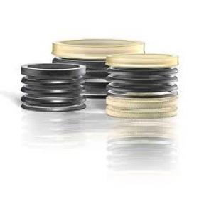 Empaque chevron el cual comprende de centros y tapas, dependiendo de la altura que se requiera son los centros que se deben utilizar, en material de lona y hule, medidas y grosores de acuerdo a las necesidades requeridas.